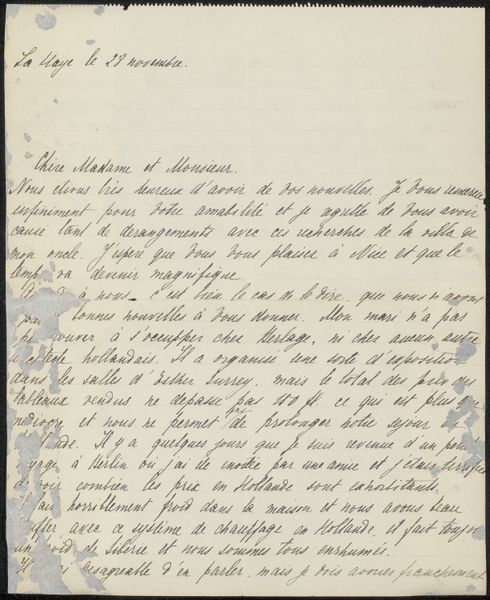 This is a letter written by Anna Sologoub to Henriette Wilhelmina van Baak and Philip Zilcken on the 26th of December. Look closely at the way Sologoub's ink bleeds into the paper, the pressure she puts on her nib with each stroke. There’s something so intimate about handwriting, isn’t there? Here, the marks aren't just about information, they are about feelings. You can almost feel the weight of each word, the care and attention given to each loop and curve. The way the letters crowd together, eager to be read, tells a story all its own. Sologoub's letter reminds me of the expressionist movement, even though the content of the letter is simply about her husband's business. The rawness and the visible trace of the artist's hand connect it to the spirit of artists like Van Gogh, who similarly used gesture to convey deep emotion. Letters like this remind us that art is an ongoing conversation, a way of connecting with each other across time and space, and that ultimately, the meaning is in the eye of the beholder.