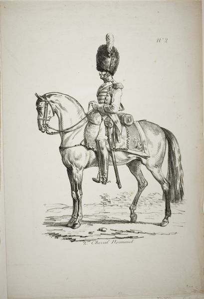 This print of a mounted dragoon, by Carle Vernet, belongs to a series depicting the Royal Guard. It's made using a technique called etching, where lines are incised into a metal plate with acid, then inked and printed. The material properties of metal enable the finest detail, ideal for capturing the Dragoon's elaborate uniform and the horse's musculature. Note the precise cross-hatching that gives the image depth and volume, a time-intensive process demanding great skill. The print medium itself democratized images in the 18th and 19th centuries, making them accessible to a wider audience beyond the elite. This coincides with a growing public interest in military exploits and the symbols of national power, and the rise of a middle class with money to spend on prints like this one. So, the next time you see a print, remember it's not just an image, but a product of skilled labor, technological innovation, and social change.