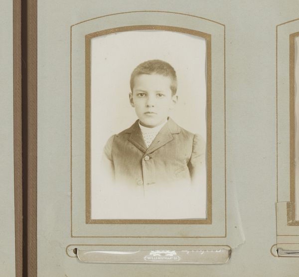 Curator: This is a fascinating photographic work, potentially created between 1902 and 1909 by Johannes Gesterkamp Jr. It's titled "Portret van een kind in witte jurk en een jongen in matrozenpak, aangeduid als Nico en Kees," which translates to "Portrait of a child in white dress and a boy in sailor suit, referred to as Nico and Kees". Editor: Well, immediately, I'm drawn in. It’s more than just a portrait; there's a touch of melancholy that sort of hangs in the air, despite their sweet, youthful faces. Is it just me? Curator: Not at all. Genre paintings from this period, and indeed portraiture generally, were deeply enmeshed with the social and aspirational values of the middle classes. A formal portrait like this broadcasted a family's status, its adherence to particular dress codes, and perhaps more subtly, their vision for their children's future. Editor: That sailor suit… Talk about symbolic baggage! It’s like a miniature uniform promising some vague destiny of naval achievement! You wonder, what were they *really* like, beyond these carefully constructed facades? And do those serious eyes hint at something less sunny going on? Curator: Exactly. There’s the performative aspect inherent to portraiture. The subjects are staged, but photography captures an instant, ostensibly an unvarnished truth of that pose. The cultural context here matters greatly; sailor suits were very popular for boys at this time, almost a uniform across Europe. Editor: It's funny how an ostensibly neutral snapshot of kids can open a Pandora's box of questions about everything from childcare practices to imperial ambitions! Looking again, I'm getting a flicker of vulnerability. Maybe it’s the lighting. Curator: The choice of monochrome really enhances the impact, and the clothing highlights class differences of that time. The contrast between the simple, functional sailor suit and what appears to be quite ornate dress emphasizes economic divisions but within one shared moment. Editor: I see the appeal. One photograph, many layers, many stories whispering just under the surface. A poignant artifact. Curator: Absolutely. This image connects the lives of individuals with broader historical trends and political realities of early 20th-century Europe.