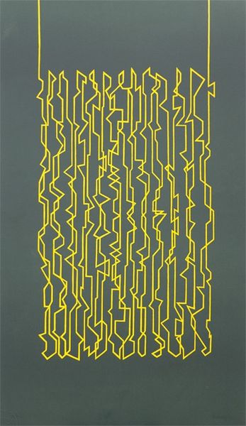 Editor: Here we have Leon Polk Smith’s "Untitled" piece, from 1946. It's a circular work with yellow and black geometric shapes. What symbols or cultural references do you see in this pattern? Curator: The L-shapes remind me of architectural blueprints or city layouts—evoking modernity, progress. Consider them as characters in a visual language: do they communicate or clash? Editor: So you're suggesting that these shapes are like letters or symbols within a larger visual system? Curator: Precisely! Smith may be hinting at something akin to a coded message, or the blueprints for an unknowable structure. The repetition embeds it in our cultural memory. Editor: That makes the painting feel more complex, like there's a hidden narrative within its simple shapes. Curator: Indeed, a dialogue between form and meaning!