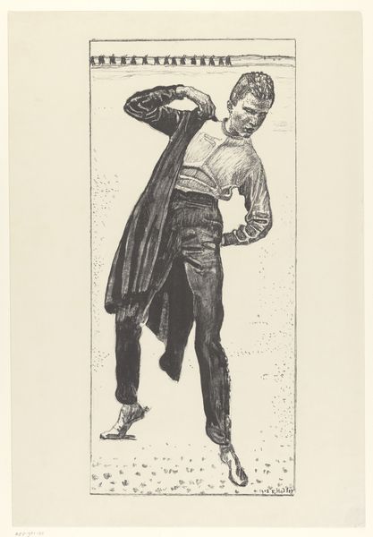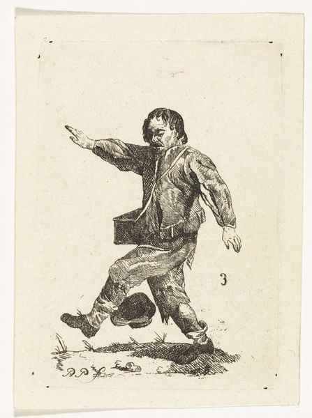Paul Gavarni made this lithograph, “Man with Kepi and Arms Raised,” in 19th century France. It presents a figure with outstretched arms, a gesture of surrender, supplication, or perhaps theatrical performance. Gavarni’s artistic output provides a window into the social types and mores of his time. Here, his detailed rendering of costume and physiognomy allows us to speculate about the sitter’s class, profession, and identity. Is he a worker, an artist, or a bohemian figure? The kepi, a type of hat associated with the military and working classes, hints at a specific social milieu in post-revolutionary France. Looking at the cultural context, we might ask: What role did images like this play in shaping public perceptions of different social groups? Gavarni’s lithographs often appeared in popular journals, contributing to a broader visual culture that both reflected and shaped social norms. To fully understand this work, historians consult a range of sources, from fashion plates to literary texts. In doing so, we reveal the complex interplay between art, society, and historical context.