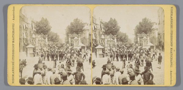 Editor: So, this photograph, titled "Piet Cronjé, generaal van de Boeren, is gevangen door de Britten bij de Modderrivier," was taken in 1901, likely a gelatin silver print. The mood feels heavy, burdened by the sheer number of figures. What's your perspective? Curator: It's fascinating how photography, often deemed objective, here pulses with a silent narrative. A story of capture, a story of a people. I imagine the dust and heat of that day in South Africa. But consider this—what doesn't the photo show? We see the captured General Cronjé, yes, but not the intricacies of the conflict, the motivations, the wider socio-political tapestry. It's a single frame from a much larger, bloodier reel. Editor: I hadn't thought of it that way. We're seeing such a small snapshot, aren't we? All those blurred faces are just… stand-ins for a bigger narrative? Curator: Precisely! They represent a turning point in the Boer War. A visual shorthand for power dynamics, colonial ambition, and the human cost of conflict. But the silence of the photograph invites our speculation, demands we ask: what happened before? And crucially, what followed? Editor: It almost feels like we’re invited to write our own narratives based on this frozen moment. The stark landscape amplifies the emotion. Curator: Landscape too is not neutral. The lack of prominent features emphasises that open exposure, the vulnerability. Does it evoke similar thoughts for you, then? Editor: Yes, completely. It prompts me to remember that history isn't just about grand events, but also the individual stories within them, even those faces blurred by time and distance. Thank you for illuminating this work! Curator: And thank you for bringing fresh eyes and keen insights to this tiny window into a complex past.