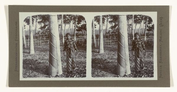 Curator: What a serene image. We're looking at "Agave planten in een tuin", which translates to "Agave Plants in a Garden", by Neville Keasberry, dating from between 1900 and 1935. It's a stereoscopic photograph. Editor: It evokes such a strange combination of peacefulness and something...clinical, almost? The symmetrical composition of the agave, the starkness of the sepia tones. Curator: Well, let’s consider the period and the colonial gaze often implicit in these early travel photographs. Stereoscopic images were quite popular; they offered viewers in Europe a sort of "virtual" tour of exotic locales like Java, where Keasberry worked. This photograph isn’t simply a landscape; it is also a commodity. Editor: Absolutely, I see that. The very act of photographing a garden becomes an act of ownership, framing a slice of the colonized world for consumption by Western audiences. Is this garden a staged scene reflecting ideas of the exotic East, a fabricated orientalism? Curator: Perhaps, we see the prominent agave plants in their pots set amidst the vegetation as the focal point. But I also think the play of light and shadow creates an evocative atmosphere. Editor: And let's not forget the technological aspect. Stereoscopic photography inherently involved a certain level of artifice to create that illusion of depth. The colonial context just intensifies the issue of representation, especially who holds the power to represent whom, and for what purposes. Curator: It’s a testament to the power of art that, even through this very constructed image, we can still grapple with themes of nature, identity, and, perhaps, even question our own position as viewers. Editor: It certainly gives a layered, multifaceted lens through which we understand historical encounters. By viewing art as an agent within global processes we’re able to further see historical political dynamics.