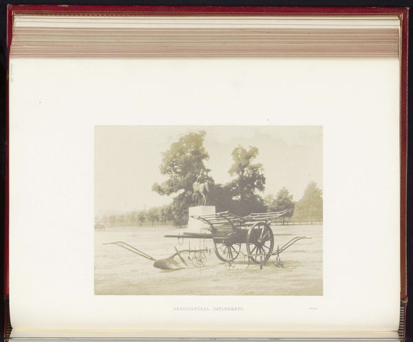 Curator: So, here we have an albumen print from 1851, entitled "Buffalokoets uit India op de Great Exhibition of the Works of Industry of All Nations van 1851 in het Crystal Palace in Londen." It's a photograph by Hugh Owen. Quite a mouthful, isn't it? Editor: Absolutely! My immediate thought? "Wow, look at all those little details." There's a strange dreaminess to the print—like glimpsing a memory or finding a relic. Is it weird I want to climb inside? Curator: It isn't strange at all. It perfectly encapsulates the Victorian era's fascination with other cultures, often filtered through the lens of what we now recognize as Orientalism. The Great Exhibition was a key platform for this, showcasing objects from across the British Empire and beyond. Editor: Ah, yes. It feels both grand and… staged, somehow. I imagine all the gawkers, wide-eyed in front of it. What do you mean, “the gaze”? It's a gorgeous artifact that clearly transported viewers. Curator: I agree. It undoubtedly transported viewers. But consider that it reinforced ideas about cultural difference and hierarchy. Presenting the “Buffalokoets” – a buffalo carriage – separated from its original cultural setting, turned it into a spectacle for the British public. A curated window into another world… on their terms. Editor: Well, looking closer, the fine details pull me away from the grand scale of politics. The filigree work, the woven canopy... someone poured heart and skill into this. Seeing it frozen like this lets my mind fill in all of the gaps, like an outline I want to color. The artist transformed metal, fabric and what seems like light woven into straw into a dream! Curator: Yes, these beautiful details emphasize craftsmanship, reflecting Victorian values but also, in a way, obscuring the realities of colonial extraction and unequal exchange that made such objects accessible. Editor: But it’s precisely that contrast that makes this print so powerful, isn’t it? We wrestle with its context. And while it feels distant, I want to understand this strange machine and the cultural currents running all around. It stirs something complex. Curator: Agreed, reflecting upon its context can be quite illuminating. Editor: Well said, here is to illuminating more wonders that connect us across space and time.