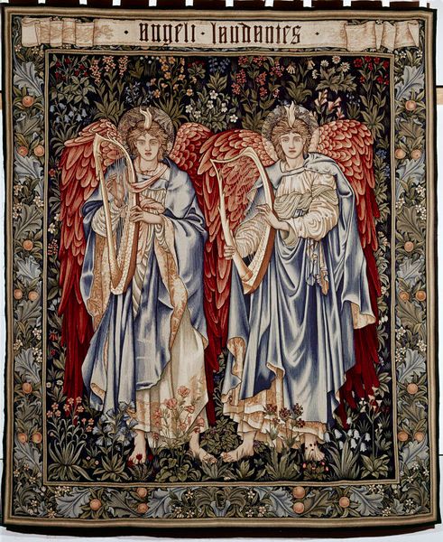 Edward Burne-Jones conceived “Angeli Ministrantes” as a tapestry, rich with symbols of divine service. Two angels, rendered with a delicate grace, stand amidst a field of flowers, each holding a staff. The angel, a motif stretching back to ancient Near Eastern art, serves as a messenger and intermediary. Here, Burne-Jones presents them in a Pre-Raphaelite style, emphasizing beauty and ethereal qualities. Consider, however, how different are these figures from, say, the winged deities of ancient Assyria, or even the more stern angels of early Christian art. The staff they carry is also symbolic, signifying authority and guidance. We see it echoed in classical depictions of Hermes or Mercury, gods who lead souls. Over time, this symbol has been passed down through various iterations, from the bishop's crosier to the scepter of monarchs, each reflecting a kind of leadership. In this tapestry, it evokes a longing for spiritual direction, tapping into a collective memory of divine guidance and protection. The serene beauty of the angels provides a powerful vision of hope, inviting viewers to engage with a deeply rooted sense of faith. This image demonstrates the cyclical nature of symbols, reflecting how the past resurfaces and evolves to meet the emotional needs of different eras.