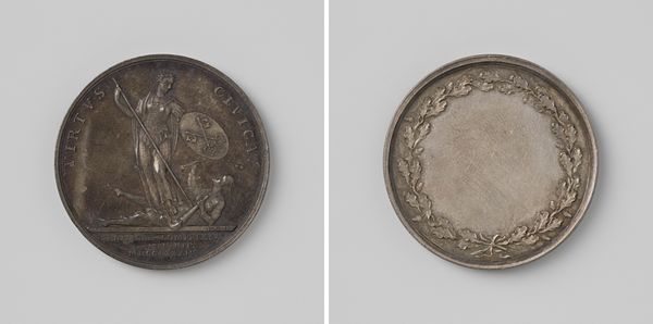 Gottfried Bernhard Loos created this medal to commemorate the marriage of Frederik, Prince of the Netherlands, and Louise, Princess of Prussia. Consider the historical context: marriages between royal families were often political alliances, meant to secure power and ensure stability across nations. In this light, the medal serves not only as a memento of a personal union, but also as a symbol of dynastic and political intentions. Note the classical allegorical figures of the angel and the cupid, styles and motifs utilized to ennoble the royal figures, portraying them as figures of almost mythical significance. The medal doesn't just capture a moment in time, it encapsulates the values, expectations, and power dynamics inherent in royal marriages. It prompts us to think about the individuals involved, and the tension between personal life and the demands of political duty.