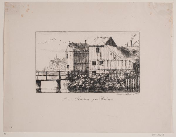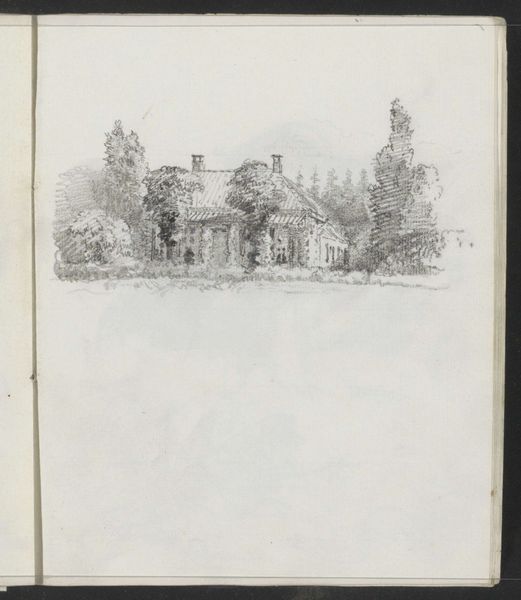 Editor: This is Paul Vanderbilt's "Shady Hill, Cambridge." It looks like an etching. I’m struck by its delicate lines and the way the house seems to emerge from the paper itself. What do you see in this piece? Curator: The composition is carefully constructed, isn't it? Note how the line leads the eye to the architectural form. Observe the artist's mark-making: the dense hatching creating shadow, versus the sparse lines suggesting open space. Editor: It’s interesting how the textures create depth, even with the limited tonal range. How does the medium contribute to the overall effect? Curator: The etched line has a character all its own. Its precision allows Vanderbilt to capture the details of the facade, while also imparting a sense of age and impermanence. Editor: I appreciate your breakdown. It helps me see how the artist used these elements to create a coherent visual language. Curator: Indeed. Reflecting on the language of lines and textures enables a new level of appreciation.