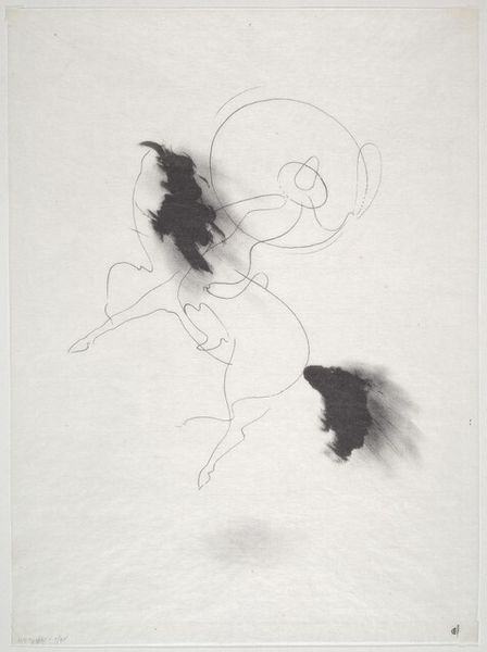 Editor: Here we have Pietro Lazzari's drawing "Bull", which seems to be an ink drawing. I am immediately struck by the contrast between the fluidity of the lines and the raw power I associate with bulls. What do you see in this piece, especially in terms of its historical or social context? Curator: This drawing is really interesting when we consider how the bull as a symbol has been loaded with different meanings throughout history. Historically, it's tied to masculinity and power, of course, but also to sacrifice. In some cultures, the bull embodies virility, and the bullfight exemplifies dominance, so this becomes quite gendered, wouldn’t you say? Editor: Absolutely. But the abstraction here seems to almost negate that reading? Curator: Perhaps. Or maybe it heightens the underlying tension. Abstraction allows Lazzari to focus on the *idea* of the bull, the essence of its force, while shedding specific cultural associations. Think about how minimalist line drawings can emphasize form and movement - what feelings might those evoke, especially for marginalized groups who might challenge such symbols of traditional power? Editor: That’s a perspective I hadn’t fully considered – the abstraction simultaneously critiques and highlights these power dynamics. I see the bull as less about actual masculinity but ideas *around* masculinity and dominance. Curator: Precisely. By deconstructing the image of the bull, the artist compels us to examine those very associations and their impact. In line with thinkers such as Laura Mulvey, how can one look at these lines without examining issues related to power? Editor: It’s like the artist is using the bull to have a broader conversation, and encouraging critical engagement. I had thought it was purely aesthetic, but now I see it as an artistic and social commentary. Curator: Exactly! That's the beautiful tension—art prompting us to question, reflect, and challenge established narratives.
