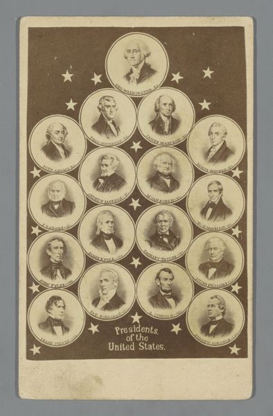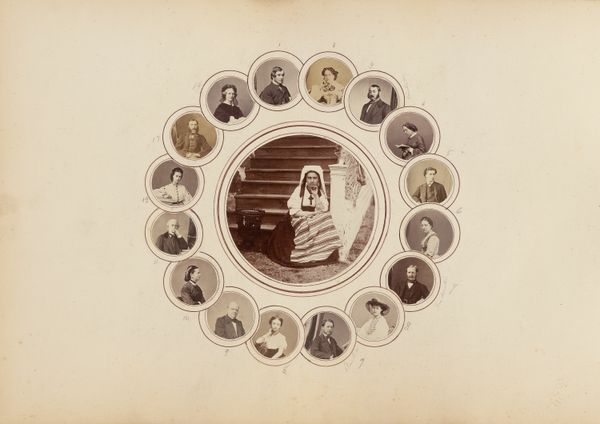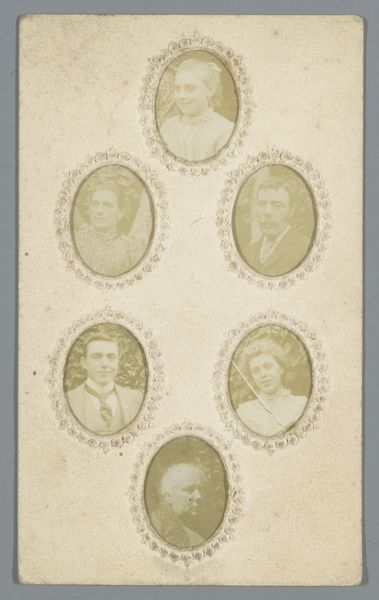 Curator: Welcome. We’re looking at “[Nine Portraits in Original Passe-Partout]”, an intriguing artwork from the 1880s currently housed in the Metropolitan Museum of Art. The artist, James William Bailey, worked with oil paint to create these miniatures. Editor: My first impression is of an arranged marriage photo album. There's an austere feeling to these formal portraits. Curator: It’s fascinating how Bailey captured such detail within these small-scale portraits. During this period, miniatures served a variety of social functions, ranging from private keepsakes to political tools and gifts between diplomatic actors, which were meant for intimate exchange. Editor: Agreed. What strikes me is how each portrait appears almost self-contained. Look how their expressions give little away! They seem to belong to some kind of unspoken code of representation. I also wonder if the rigid structure and formal poses point to broader societal norms around gender and class expectations. Curator: The piece presents an interesting crossroads between photography and painting, two mediums undergoing significant development at the time. Bailey explicitly identifies the works as photographs coloured in oil. It raises interesting questions about how the visual hierarchy of portraiture circulated as currency, as social ritual. Editor: Definitely. Thinking about representation, it is also striking that most of these people appear to be white Europeans. Given the legacy of imperialism at this time, the absence of non-white faces suggests so much about who had the privilege of having their image preserved in this way, not just in art but also in society. Curator: I find myself pondering what happened to all these subjects after these portraits were made. What kind of families, or perhaps what kind of social positions did they hold within society? It would be quite something to uncover some details about them! Editor: Yes, absolutely. Looking beyond the art history, what about thinking critically about the legacies these figures may represent? Portraits like these should challenge us to ask complex questions, and make no assumptions about any one life. Curator: Thank you for shedding light on those critical aspects, reminding us that an art piece is a confluence of artistry, representation and historical forces, revealing more about societal structures. Editor: And that even historical objects can ignite fresh dialogue!