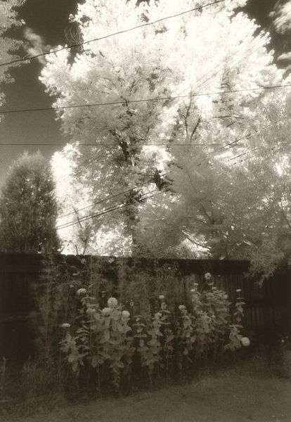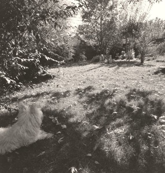 Robert Adams made this photograph of Longmont, Colorado, and I’m immediately drawn to its play of light and shadow, like a dappled memory. The photo has this beautiful range of tones from dark to light that almost feels like a pencil drawing. The texture of the grass, the wildflowers clustered around the stone, even the plaid of the figure’s shirt, become these intricate patterns when translated into black and white. Look at that single stone amidst the daisies. It’s like a marker, an anchor in this sea of ephemeral blooms. The surface is rough and solid against the delicate petals, creating a tension that’s both comforting and unsettling. Adams reminds me a bit of Walker Evans in his focus on the American landscape, but there's also something uniquely quiet and contemplative about his work. It’s as if he’s inviting us to find beauty in the overlooked, to see the poetry in the ordinary.