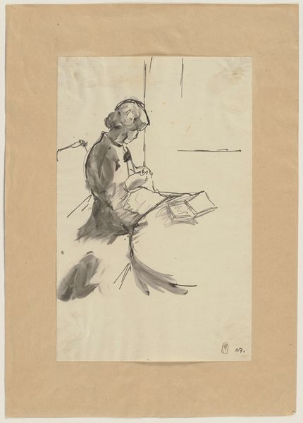 Editor: So, this is "Le Gamin à L'orvet," possibly from 1908, by Auguste-Louis Lepère. It looks like it's done with pencil and engraving on paper, currently residing here at the Art Institute of Chicago. It gives off such a melancholic feel, doesn't it? The boy seems withdrawn. What do you see in this piece? Curator: What I see is a complex representation of childhood and labor, ripe for deconstruction. Lepère positions the boy, not in playful activity, but almost posed, bearing a certain world-weariness, wouldn’t you agree? Consider the social context. At the turn of the century, child labor was rampant, often romanticized yet deeply exploitative. Is Lepère complicit in that romanticization, or is he subtly critiquing it? Editor: That's interesting. I hadn't really thought about the labor aspect, but now I see it in his posture and in that…stillness. The setting also feels...staged, somehow. Curator: Exactly. The table and jars could be read as symbols – perhaps alluding to a family trade. Does this influence our understanding of his social standing? The title refers to the sale of "Orvet," or violets, so is this about child vendor narratives prevalent in the period? Are we looking at social commentary disguised as a sentimental portrait? Editor: I see what you mean. It’s much more than just a portrait of a kid. There is also a lot of space around the central subject. Curator: Indeed. It suggests the boy's marginalization, creating a visual metaphor for his societal position. Are we positioned as viewers to admire or critique? Consider how our gaze reinforces or challenges established power dynamics. Editor: That really changes how I see the artwork now. It’s not just a depiction; it’s a statement about the social realities of children at the time. Thanks. Curator: Precisely. By examining the socio-political climate, we can unveil the artwork’s capacity to spark discussions about class, opportunity, and representation, rendering the image ever so relevant. It shows art can encourage crucial discourse.