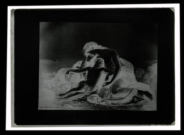 This is a reproduction of a painting by Laurens Lodewijk Kleijn, who lived in the Netherlands during a time of significant social change. It depicts a reclining woman with a lyre, a scene that harkens back to classical mythology and perhaps the romanticism of the 19th century. The image invites us to consider the role of women in art and society during Kleijn's time. Often portrayed as muses or allegorical figures, their individual stories were frequently suppressed. The woman here, with her lyre, could be seen as an embodiment of harmony and beauty, yet her recumbent pose might also suggest passivity. The image is a kind of representation of women, but it doesn't necessarily reflect the lived experiences and growing calls for agency and recognition of women during this time. Although the original painting may have intended to depict a timeless scene, it is still worth considering the ways in which Kleijn’s photograph reflects the complex and evolving societal attitudes toward women.