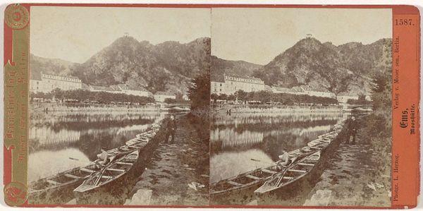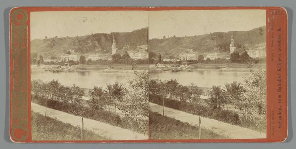 Anselm Schmitz’s stereo card, captures Königswinter and Drachenfels in a double image of muted tones. The composition is divided into three horizontal bands: the textured foreground, the flat expanse of water, and the distant mountains. A solitary figure stands on the bank, anchoring the scene while emphasizing the surrounding landscape. The use of stereoscopy is critical here. By presenting two slightly different perspectives, Schmitz invites us to reconstruct a three-dimensional space. This technique not only mimics human vision but also highlights the constructed nature of perception. The image doesn't just represent a scene; it actively engages us in creating spatial depth. Consider the implications of capturing a landscape in this manner. Does it challenge the conventional representation of space and form? The stereo card, as a medium, complicates the relationship between reality and representation, prompting us to question how we perceive and interpret the world through images.