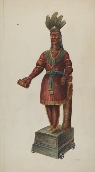 Florian Rokita made this painting of a cigar store Indian. The figure, adorned with feathers, stands as a symbol of the indigenous peoples encountered during the expansion of commerce. The feathered headdress and the offering of tobacco are gestures laden with meaning. In ancient cultures, feathers symbolized power and a connection to the divine, seen in depictions of Egyptian gods and Renaissance angels. Here, the headdress might evoke notions of nobility, and the tobacco could represent trade or even tribute. Yet, this image is mediated through the lens of commercial enterprise, where the figure becomes a commodity, a signifier for the wares sold within. Consider how this contrasts with the headdress's spiritual significance in indigenous cultures. This symbol has been reshaped, its sacred power repurposed. The commercial reshaping of cultural symbols speaks to the complex interplay between memory, perception, and the subconscious forces that shape our understanding of the world.