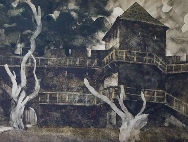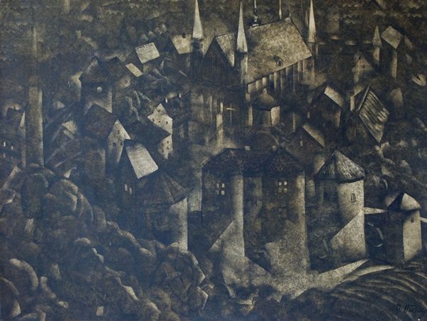 Curator: Looking at "Ashtarak, Karmravor," painted by Petros Malayan in 1973, I'm struck by its almost monochromatic palette. What’s your initial take? Editor: It evokes a powerful sense of history, of ancient stones worn by time. It's brooding, almost gothic, in its atmosphere. Curator: Right, let's dive into that. Malayan, working within a Soviet Armenian context, presents us with this... almost ghostly image. The Karmravor Church, central to the composition, becomes more than just a building. It’s a symbol, a touchstone to the past. It was likely made with oil or oil pastels. Can you detect any signs? Editor: You can certainly see a buildup of pigment, giving the surface texture a palpable quality. But more than that, think about how the church, especially religious architecture, would have been received and how the socio-political climate would have allowed artists like Malayan to find spaces and patronage. It's a balancing act. How does it reflect within cultural and political currents? Curator: Absolutely. The act of depicting it, immortalizing it on canvas, is inherently political. This relates back to the underpainting technique and impressionist style - it's there but blurred, never defined, to maintain some abstractness. By focusing on a tangible historical element, he navigates those complex Soviet controls, almost using the past to comment on the present. Editor: The very choice of material is, then, significant. These readily accessible, mass-produced materials connect Malayan's work to a wider consumer culture, and so we circle back to the relationship between material culture, national identity, and the subtle forms of resistance art can embody. It seems he found an interesting loophole. Curator: The scale and location of the painting’s eventual display certainly dictated its impact too. Would it have found its way into public collections or was it destined for more private circles? How that affected its social function is an essential point of enquiry. Editor: Indeed. It’s interesting to consider who his target audience was at that time. A lot can be gleaned from such reflection. Curator: Agreed. Exploring this piece helps to unveil complex strategies adopted by artists under specific regimes and I think this really sums up why historical context really matters to such analyses. Editor: And by grounding our understanding in material conditions and techniques, we can unpack a wealth of untold cultural context.