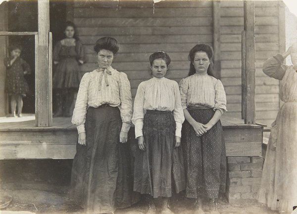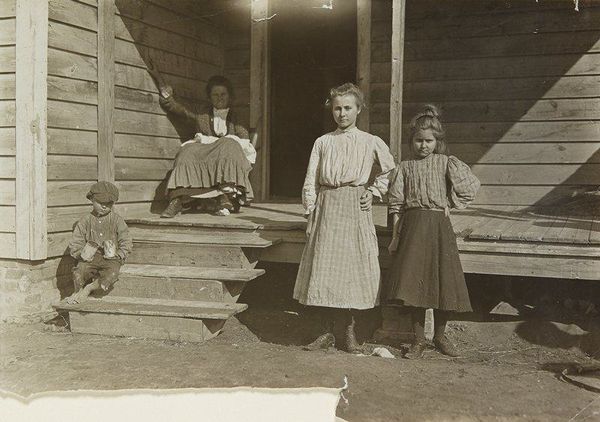Curator: I find this photograph so compelling, such raw emotion. It’s an untitled work, number three from Milton Rogovin’s Appalachia series, taken sometime between 1962 and 1971. He worked primarily with gelatin-silver prints, didn't he? Editor: Yes, he did. It certainly grabs your attention. I'm struck by the almost oppressive geometry – the vertical lines of the dilapidated porch frame against the girls’ stoic expressions. The high contrast contributes to the serious tone of the image. Curator: Absolutely. Rogovin dedicated his life to documenting marginalized communities, particularly the working class. In this photograph, we see four young girls. They are standing on a porch, their expressions, as you noticed, quite somber. Their social circumstances speak volumes. Editor: Precisely. One must consider the socio-economic climate of Appalachia during that time, struggling with poverty and lack of opportunity. Rogovin’s work, often associated with the Black Arts Movement, served as a form of social commentary. The subjects return your gaze directly, an unspoken challenge to the viewer. Curator: Let’s look closely. The formal composition—the way he arranges these figures, placing them within this tight space, enhances the image's emotional impact. Semiotically, the textures communicate the broader experience of poverty. What do we glean from the materiality of the print itself? The grain, the depth of blacks? Editor: The contrast Rogovin achieves emphasizes both the grittiness and the humanity. Consider how galleries at the time largely ignored art depicting such bleak social realities. His decision to focus on those outside mainstream society highlights a certain power dynamic inherent in art. By focusing on the nuances, Rogovin encouraged empathy within the socio-political contexts of the period. Curator: It’s an image ripe with these kinds of contradictions. What emerges is that it makes you examine your values when facing subjects of societal neglect. Rogovin seems to make a statement about the invisible aspects of reality, making this photograph visually provocative and intellectually complex. Editor: His work challenged societal expectations. Seeing it here today serves as an important reminder of the continued struggle for equality, offering us more than mere historical context—it urges critical self-reflection.