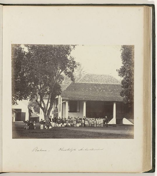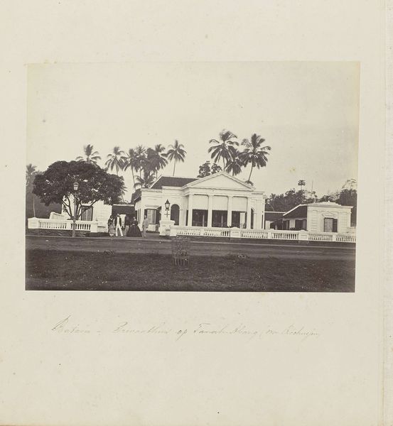 Woodbury & Page captured this photograph, titled 'Woonhuis', and preserved within the Rijksmuseum collection. The image presents a dwelling, most likely located in the Dutch East Indies, in the late 19th century. Consider how the architecture blends European and indigenous styles, reflecting the complex social hierarchy of the colony. The 'Woonhuis' or residence, signifies more than just a home; it embodies the power dynamics of colonial society. Who lived here? What was their relationship to the local population? Photographs like this served a crucial role in shaping European perceptions of colonial spaces. They were collected in albums and displayed in parlors, reinforcing ideas of exoticism and domination. Visual records created by institutions like the Rijksmuseum become vital resources for understanding the intertwined histories of colonizer and colonized.