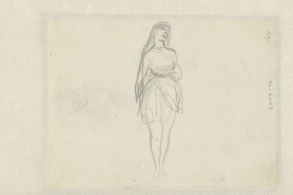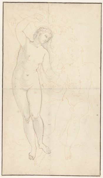 Curator: Here we have Denman Waldo Ross's sketch titled "Seated Male Nude Turned One-Half Right," currently held at the Harvard Art Museums. The paper measures about 11 by 8 1/2 inches. Editor: The angular lines cutting across the figure give the piece a sense of unease, almost as if the subject is trapped or constrained by some external force. Curator: Ross's process is fascinating; he’s laid bare his structural methodology, almost diagramming the figure's geometry, emphasizing the mechanics of representation itself. Editor: It makes you wonder about the position of the nude within artistic training at the time. Was this for academic study? Was the drawing displayed to the public? Curator: Indeed. Ross's approach challenges traditional notions of artistic creation. Instead, he reveals the underlying labor and systems that contribute to the making of art. Editor: It certainly complicates our understanding of the power dynamics inherent in the artist-model relationship, considering the drawing as a transaction of labor. Curator: Exactly. By foregrounding process, he disrupts the romantic ideal of artistic genius. Editor: Food for thought on the role of institutions in shaping artistic practices.