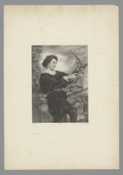Curator: Let’s discuss this portrait of Auguste Raffet created by Auguste Bry in 1839, held here at the Art Institute of Chicago. Bry rendered it using lithography, a technique known for its rich textures and delicate tonal variations. What are your initial thoughts? Editor: The piece feels quiet and contemplative. I'm struck by the contrast between the precise lines delineating Raffet’s face and the almost ethereal quality of the background. It seems to capture a moment of intense artistic concentration, and maybe even a hint of melancholy. Curator: Absolutely. Notice how the artist uses hatching and cross-hatching to build form and shadow. It creates depth and volume within a largely monochromatic palette. And the delicate lines capture the sitter’s likeness with remarkable clarity. Semiotically, the pen in his hand functions as both tool and signifier, alluding to his artistic identity. Editor: Yes, and situating this portrait within its historical context is equally enriching. The Romantic era grappled with the burgeoning industrial revolution, leading many artists and intellectuals to idealize individual expression and celebrate personal genius. Raffet, depicted absorbed in his craft, becomes an embodiment of that romantic ideal, particularly regarding men’s work during this time. Curator: Bry was particularly attentive to the minute details. Look closely at the way he’s rendered the collar of Raffet’s jacket. There’s an emphasis on the tangible, on texture, while the rest of the piece emphasizes movement and the conceptual process. Editor: And I think the fact that it is a portrait made by one artist of another invites us to consider the dynamics within artistic communities during this period. There may be admiration here, perhaps even professional aspiration, interwoven with questions of social mobility and the role of artistic labour during this transitional time in Europe. Curator: I find the romantic treatment of light particularly compelling. The way it glances across Raffet’s brow, illuminating his features and emphasizing the intensity of his gaze, reinforces the emphasis on his individualism and subjectivity that you’re raising. Editor: Thinking about its legacy, it makes me wonder what this image signified to contemporary audiences versus its value now. Who saw this, who could afford it? Did this image become part of a visual narrative, and does it resonate with broader narratives of marginalized voices? Curator: Considering all its complexities, it's fascinating to delve into how Bry captures both the technical prowess and internal world of a fellow artist. Editor: Definitely. Thinking about this Romantic portrait today opens doors for more questions than answers about men's portraiture. It leaves me contemplating the shifts and continuity that affect images as they age and as they're being constantly reproduced.
