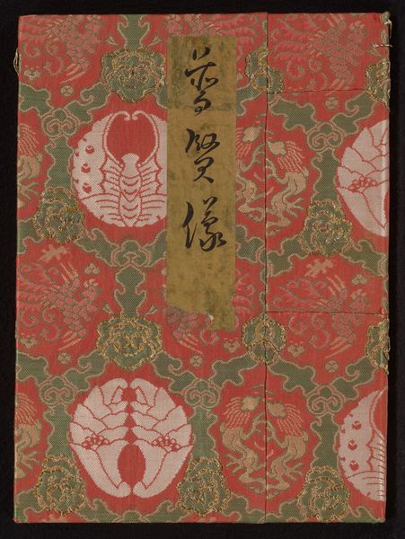 Editor: This is the "Japanese Explanation of the Lotus Sutra" from 1719, a textile on paper. I am immediately struck by the aged look and the intricate textile work used as the background. It almost feels like a stage curtain! What story does this tell from your perspective? Curator: Considering its socio-cultural context, this piece serves as a powerful artifact. The Lotus Sutra, central to many forms of Buddhism, gained widespread popularity during this period. What's interesting is not just the scripture itself but its presentation. How does the use of luxurious textiles and paper influence the viewer's perception of religious doctrine? Editor: So, it is kind of an indication of social or financial class, with access to beautifully printed and bound versions, as opposed to simpler ones? Curator: Precisely. The material choices elevate the text, suggesting a certain level of patronage and social status associated with its creation and consumption. The artistry involved signifies the importance the patrons placed on spreading this interpretation of the Sutra. Who was its target audience? Was this intended for personal use, or public dissemination? These are essential questions. Editor: The idea of presentation shaping our understanding is so compelling. Looking at art this way highlights its active role in society. Curator: Indeed. It prompts us to consider art beyond its aesthetic value. Think about the book itself; it becomes a tool of cultural influence. Examining this helps us see how imagery and material culture contribute to shaping societal values and belief systems in 18th-century Japan. Editor: That’s a really great way to view this; thank you! Curator: My pleasure. Analyzing art through this lens provides critical insights into how societies function. I will ponder on the role that art played in giving power to the religious interpretation.