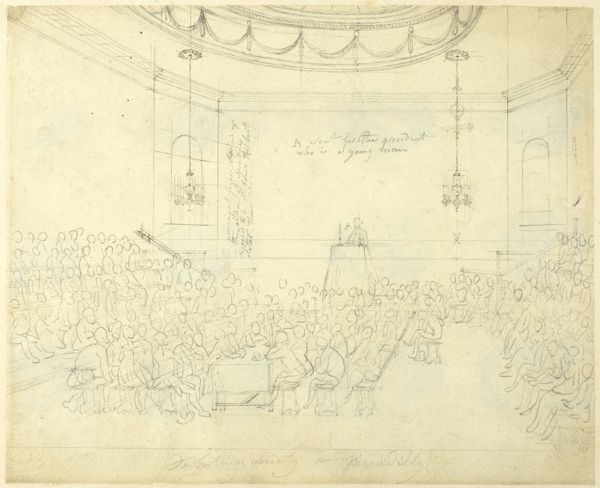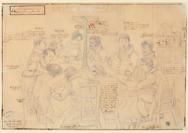 Hendrik Willem Caspari made this pen drawing, Identificatie van de portretten op het schilderij De Tekenzaal van de Maatschappij Felix Meritis te Amsterdam, at the end of the 18th or beginning of the 19th century. Felix Meritis was a society in Amsterdam dedicated to the arts and sciences, and this drawing depicts a life drawing class in progress. We see men of various ages and social standing gathered to study and copy the nude model at the center. The drawing provides a glimpse into the social and intellectual life of the Netherlands during a period of political and economic change, from the Batavian Republic, through the Napoleonic Kingdom of Holland, to the United Kingdom of the Netherlands. These institutions sought to promote enlightenment ideals and foster civic engagement. To understand this drawing better, we can consult archives that contain the records of the Felix Meritis society. This will enable a more nuanced interpretation of its significance within the cultural landscape of the time.
