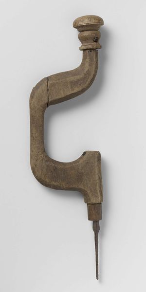 This is a drill handle, made from wood by an anonymous maker. The beauty of this object lies in its simplicity. The wood grain follows the contours of the design, showcasing the material's natural texture and warmth. Imagine the maker carefully carving and shaping the wood, using hand tools to create a comfortable and functional form. The handle's ergonomic design reflects an understanding of the user's needs and the importance of a good grip. It's a testament to the maker's skill and attention to detail. This unassuming object also tells a story of labor and craftsmanship. It reminds us of the countless hours spent by artisans shaping materials by hand, creating essential tools for everyday life. Considering the material, the making, and its place in daily life invites us to reconsider the value we assign to functional objects, and the labor that goes into them.
