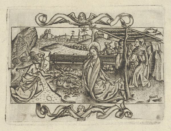 Antonio Tempesta created this small print entitled ‘H. Aurea’ using etching techniques. At first glance, the symmetrical composition, framed by an ornate oval border, draws our eye to the stark scene of martyrdom. Tempesta uses the linear precision of etching to create texture and depth. The parallel lines forming shadows and the detailed rendering of the figures create a dynamic interplay of light and dark. The artist's formal structure reinforces the symbolic content. The torture is juxtaposed with a smaller depiction of Christ on the cross, connecting the saint’s suffering to Christ's sacrifice, therefore providing a narrative that aims to give meaning. The scene is framed by a decorative border that gives the artwork a sense of enclosure. The image and its frame function together to communicate a message about faith, sacrifice, and the power of visual storytelling. The artist invites us to contemplate these themes through the formal arrangement of line, shape, and form.