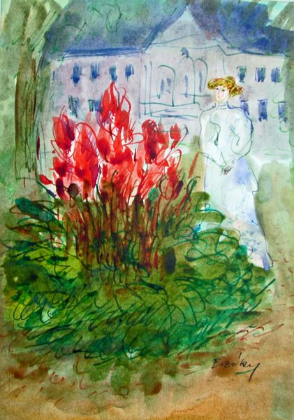 Maria Bozoky made this watercolor painting, Proust: Daughter of Swann, and it feels like a fleeting memory. The way Bozoky lets the colors bleed and blend creates an atmosphere that's both dreamlike and immediate. Look at the way she handles the greens – so many different shades, all washed together. It’s not about precision; it's about capturing the feeling of being enveloped by nature. The paint is thin and fluid, allowing the white of the paper to peek through, giving the whole scene a luminous quality. Notice the figure in the center, slightly blurred and ethereal, as if emerging from the depths of the garden itself. This mark feels so precarious, as though she might disappear completely. Bozoky's work reminds me of Paula Modersohn-Becker, who also had a knack for finding the extraordinary in the everyday. Ultimately, art isn’t about answers, it’s about the ongoing conversation.
