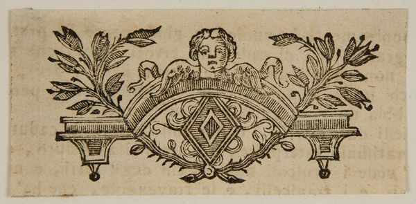Curator: This anonymous print, titled "Trophy of Roman arms, with a winged genius' head," presents a fascinating heraldic emblem. I'm immediately drawn to the starkness of the linework. Editor: It feels almost unsettling, doesn't it? The winged genius juxtaposed with these symbols of war and Roman authority... what narratives of power and identity were circulating to produce such a symbolic configuration? Curator: Precisely. It reflects a moment where classical imagery was being repurposed, re-imagined, to legitimize contemporary social and political structures. Editor: I wonder about the original context. Was this intended as propaganda? How does the absence of color inform its message? Is it perhaps a commentary on the emptiness of war, devoid of the vibrancy of life? Curator: Perhaps it's both a celebration of conquest and a subtle critique, which is something we see often in these kinds of works. Editor: This image really provokes reflection on the complex relationship between power, symbolism, and the human spirit. Curator: Indeed, and the questions it raises about the anonymous artist's intent remain relevant today.