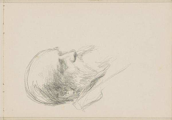 Editor: Here we have a pencil drawing titled "Portret van een man met een baard" (Portrait of a Man with a Beard) made by Jan Baptist Tetar van Elven around 1843-1864. It feels like a quick sketch from a personal sketchbook, capturing a fleeting moment. What draws your attention in this seemingly simple portrait? Curator: The immediacy of the sketch is very revealing. The beard, meticulously rendered with tight, curling lines, acts as a symbol of the subject’s… perhaps not virility, but certainly presence. Think of the beard across cultures: wisdom, authority, rebellion. What feeling does this specific rendering evoke in you? Editor: I hadn’t considered the beard that deeply, but I see what you mean! The intense detail compared to the rest of the sketch does give it more weight. It almost grounds the image. The man looks weary somehow. Curator: Weariness is key. Consider what symbols resonate during times of upheaval. During the mid-19th century, the Industrial Revolution drastically changed society. A portrait, especially of a bearded man, becomes a marker of traditional values confronting modernity. Does it then change the way you see this "simple" sketch? Editor: Absolutely, understanding the context adds a whole other layer to my interpretation. The sketch now feels like more than just a likeness. It feels like a symbol of something bigger happening in that era. Curator: Precisely! And that, in essence, is the power of the visual symbol – its capacity to hold cultural memory and spark continued conversation. Editor: I never would have considered this, without this perspective. Now I understand a lot more about how images really speak through time! Thanks.