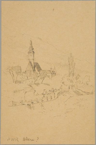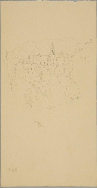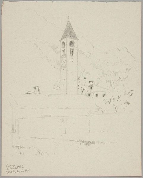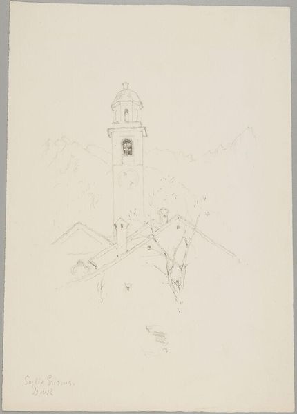 Curator: Denman Waldo Ross's pencil drawing, titled "Soglio, Switzerland," presents a delicate rendering of a small town nestled within a mountainous landscape. Editor: The initial impression is one of lightness, almost ethereal. The pencil strokes seem so minimal, barely there, yet they define the scene beautifully. Curator: Ross, an advocate for design principles rooted in color theory and formal harmony, likely chose this subject for its picturesque qualities. Soglio, a village known for its stunning views, offered him an opportunity to explore the relationship between nature and human settlement. This composition reflects idealized notions of rural life. Editor: It's fascinating how the sparse use of graphite conveys so much depth. I'm curious about the kind of pencil he might have used. Was it locally sourced graphite? The texture of the paper must have played a huge role in creating those subtle gradations. Curator: It’s interesting how the artist captured a sense of place and time through such restrained means. Editor: Exactly, and by studying his materials, we get a closer understanding of the artist and his era.