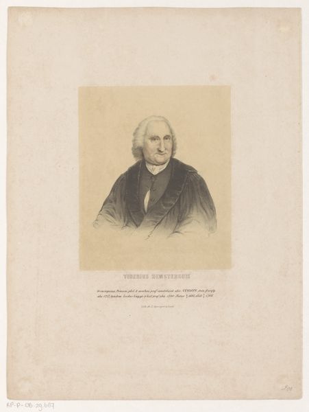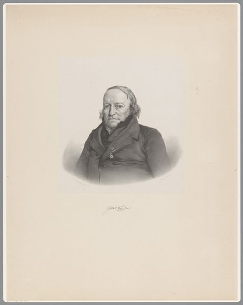 Editor: We're looking at "Portret van David Ruhnken," an engraving from around 1850 by Leendert (I) Springer. The precision in the engraved lines that capture his features is what stands out to me. How would you interpret this portrait through a formalist lens? Curator: Certainly. The artist's meticulous attention to line and texture compels us to view it with deeper analysis of composition, form and space. Notice the subtle interplay of light and shadow defining Ruhnken's face and attire. How do you read the relationship between the subject and the space? Editor: The composition is strongly focused on Ruhnken himself, isn't it? The surrounding space is largely empty, putting all the emphasis on his presence and features. Is it important? Curator: Exactly. It draws us directly to his physiognomy. Observe the precise lines of the face, how they contrast with the smoother surfaces of his clothing. Do you see how Springer manipulates line weight and density to model volume and texture, creating depth in the figure? Editor: Now that you point it out, I see how the engraver uses the line to suggest shape, volume and direction, using varying tonal scales to enhance texture and form, as well as emphasize detail. That must have been deliberate? Curator: Indeed, the engraving technique here is a significant aspect of the artwork's intrinsic qualities. It shows Springer’s understanding and control over his medium. Through this control he also brings in structure. Is the relationship with other forms in other of Springer's artwork significant in any way? Editor: I see it now! The medium becomes as significant as the subject himself. This close attention to form over historical context or biography offers an entirely new appreciation for portraiture. Thanks! Curator: It's a testament to how much can be gleaned from a purely formal assessment, allowing the artistry of Springer to come alive for us even today.