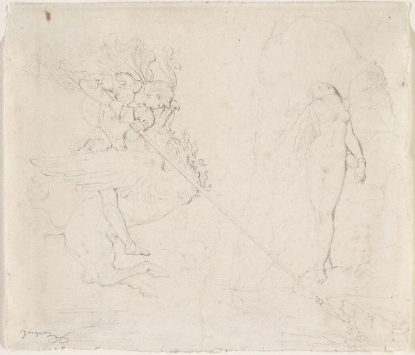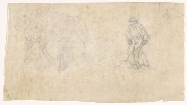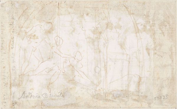 Curator: This is a drawing titled "Boy Playing Golf," created around 1610 to 1620 by Gerard ter Borch the Elder, part of the Rijksmuseum's collection. It's rendered with pencil on toned paper. Editor: Well, right off the bat, it has a whimsical, unfinished energy. The sketchiness kind of captures the fleeting nature of childhood, doesn't it? He's right in the middle of his game but almost transparent in a way. Curator: Absolutely, the transparency you're noting comes from the layered symbolism inherent in sports and games during this era. Golf, specifically, was associated with the elite, and the artist has purposefully used the light pencil work to reveal it in its initial stage. It serves as a reminder of life's impermanence. Editor: Interesting. I hadn’t thought of that. The kid seems really focused, even amidst this…blur. I get the feeling that he would become someone very important one day, like an early version of business tycoon, or someone who really excelled and dominated later on in life. Curator: That could stem from the artist’s exploration of social structures; golf wasn’t accessible to all. Note also how the costume he wears evokes cultural continuity. The symbols subtly underscore cultural norms about identity formation. The toned paper, reminiscent of old parchment, suggests these issues are historical, still relevant. Editor: The "unfinished" aesthetic still intrigues me. Does that tie into the symbolism as well? A commentary on the incompleteness of human endeavours, even the most privileged ones? Curator: Precisely! Ter Borch is very deliberate here, I feel, in evoking ideas about inherent imperfection and progress, mirroring the ever changing socio-political terrain of the Dutch Golden Age and using the incompleteness to challenge social hierarchies and perceived destinies, adding a potent emotional weight. Editor: It does make you wonder about the boy. Did he grow up to become someone remarkable? A tragic story perhaps, to create such resonance for the symbolism used within it. Curator: I find it a captivating dance between form and historical insight. It makes you really pause and think! Editor: Yes, and its incompleteness ironically feels so perfectly complete in what it manages to capture.
