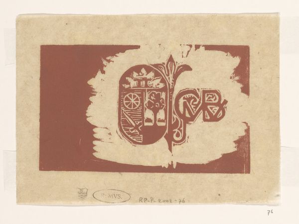 Editor: This is "Letters," a woodcut print by Bernard Willem Wierink from around 1910. The bold typography feels so modern, almost like an advertisement, yet there’s something old-world and hand-crafted about it, too. How do you interpret this work, seeing those dueling approaches? Curator: This piece truly speaks to the transitional moment of the Art Nouveau movement. While it embodies the aesthetics of handcrafted design celebrated by the Arts and Crafts movement, its focus on typography suggests the rise of commercialism. Have you considered how the very act of printing, a form of dissemination, inherently engages with societal access and potential shifts in power? Editor: Not until you pointed it out. I was so focused on the "arts" side of the Arts and Crafts movement that I didn't think of what its reaction would be against rising commercialism and distribution models. It brings to mind discussions about the rise of consumer culture at that time and anxieties around mass production and accessibility. It becomes so much more than just decorative letters. Curator: Exactly. The choice of medium – the woodcut – speaks to this tension. Woodcut is a labor-intensive process, positioning itself against mass production. The imagery becomes coded with values of labor and uniqueness. What do you think, then, these specific letters, "O" and "M" may point to? Editor: Well, those were also my initials on this project, haha. That aside, maybe "O" stands for object and "M" stands for maybe...man, representing society? That is, as objects gain mass in society, do we, in turn, become products to produce objects? Curator: You're moving to a direction beyond me. Your insight unveils how we can continually re-evaluate art by placing current thinking upon pieces, providing space for novel, unexpected understandings of it. What a refreshing perspective. Editor: Thanks for helping me dig a little deeper into my approach, I definitely won't overlook the socioeconomic aspects of artwork as readily.