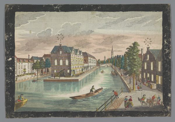 Georg Balthasar Probst created this print of the Bierkade in The Hague using etching and colored engraving. The pale blues and greens imbue the scene with a serene atmosphere, while the strict horizontal and vertical lines of the architecture anchor the composition, creating a sense of order. Probst masterfully uses linear perspective to draw the eye deep into the composition, past the canal, the buildings and into the distant vista. This technique serves not only to depict space but also to structure a visual hierarchy, suggesting a rational ordering of the world. Note the bridge, not just as a physical structure but also as a semiotic device. It represents connection, transition, and perhaps even the bridging of different social spheres. Through the formal arrangement of space and the strategic use of perspective, the print invites us to consider the underlying structures that shape our perception and understanding of urban environments. Art, after all, is not a mirror reflecting reality but a hammer with which to shape it.