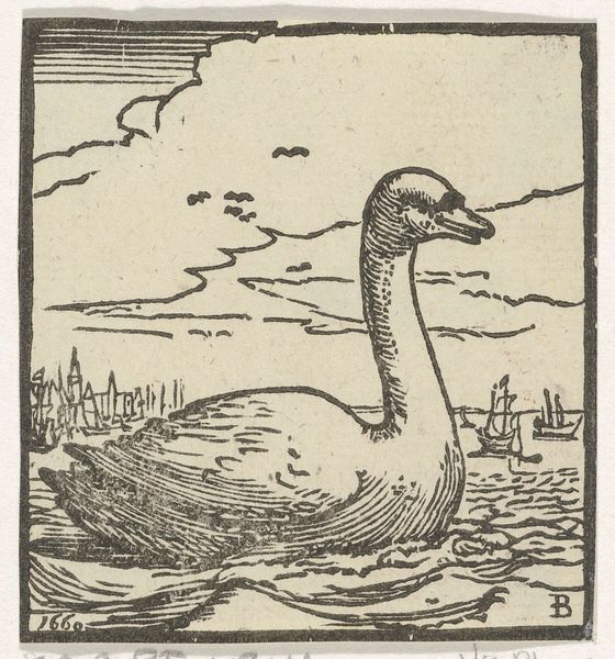 Dirck de Bray created this small print of an Ostrich sometime in the 17th century. The artist captures our attention with an awkward, long-necked bird rendered through stark contrasts of black ink on a light background. The lines are clean and decisive, giving the creature a somewhat unsettling presence. De Bray’s background in architecture and painting clearly informs his grasp of form and composition. This print shows a confident handling of line and texture. The parallel lines in the sky create a sense of depth, while the jagged lines of the landscape give it an almost primordial feel. The ostrich itself becomes a signifier, perhaps of exoticism, ignorance, or even satire, depending on the viewer’s interpretation. The peculiar object it appears to be holding in its foot, alongside the decaying tree, introduces an allegorical dimension, one that destabilizes a straightforward reading. This print invites us to ponder the symbolic potential inherent in its composition and to question the presumed meanings we ascribe to such imagery.