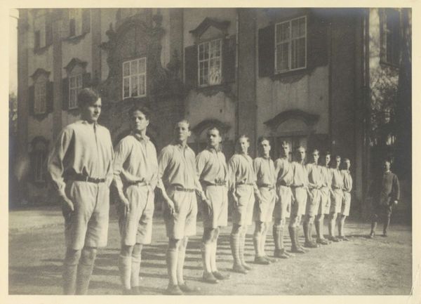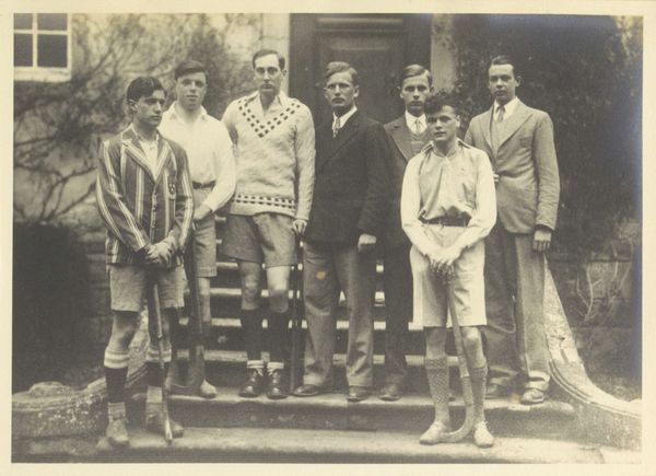 This photograph of the Schule Schloss Salem hockey team captures a moment in time with a specific material presence. Made through the traditional photographic processes of its era, the image is more than just a visual record; it is a material object. The sepia tones and the paper's texture subtly communicate the era's values and aesthetics. Every detail, from the players' uniforms to the backdrop of the school, is captured through the lens. The arrangement of the subjects, with the goalie seated in front, suggests an intentionality. The materiality of the photograph is inextricably linked to the social context. In the early days of photography, the process involved complex chemistry, skilled labor, and specialized tools. The photograph becomes a tangible artifact that connects us to the past, reminding us of the labor and skill involved in capturing images. It challenges us to recognize the importance of materials and making in understanding the full meaning of an artwork.