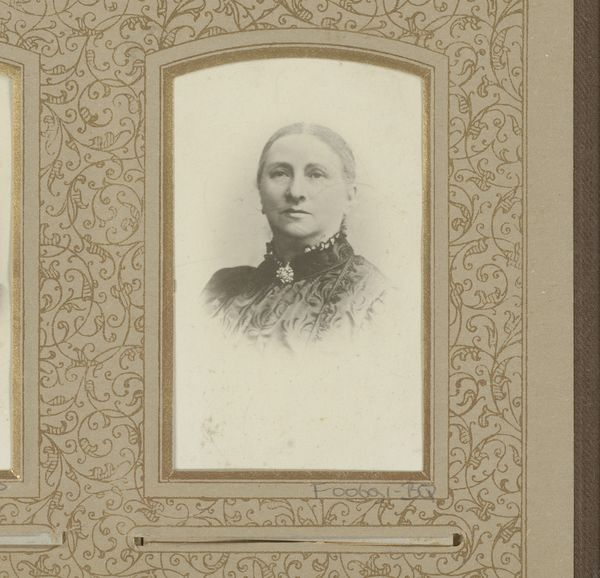 Curator: This is "Portret van een vrouw met witte klederdrachtmuts en oorijzers" (Portrait of a Woman with White Traditional Headdress and Earrings), dating from 1873-1909, by Idanus Hendrikus Slaterus. It's a photograph, and I find its directness quite compelling. What strikes you most about this image? Editor: It's the headdress and jewelry – they suggest a very specific cultural identity. It makes me wonder, what can we infer about this woman's place in society just by looking at her portrait? Curator: That's precisely the right question to ask! Photography, especially in the 19th century, often served to solidify social hierarchies and document cultural identities. The elaborate headdress, likely indicative of regional or religious affiliation, signifies adherence to tradition. The jewelry, while simple, speaks to a degree of economic stability. Who controlled the means to photograph people, and for what purposes? Editor: So, photography here becomes a tool for defining and even preserving cultural norms? Is it fair to say that the very act of capturing her image could be interpreted as an assertion of a particular cultural identity? Curator: Absolutely. But consider also who is behind the camera. Was the photographer from the same community, or was he an outsider looking in? Power dynamics are at play in both scenarios. The sitter’s gaze, so direct, seems to meet ours across time – is this defiant or submissive? How do we read that expression, given what we know and, importantly, what we *don’t* know? Editor: I hadn't thought about the photographer's role in that way. It's fascinating how a single portrait can hold so much social and historical context. Curator: Indeed. And thinking about the absences in the image - what isn't being shown - can be as illuminating as what is visible. A potent reminder to look beyond the surface and consider the complex layers of identity and representation. Editor: I'll definitely approach portraiture differently now! Thanks!