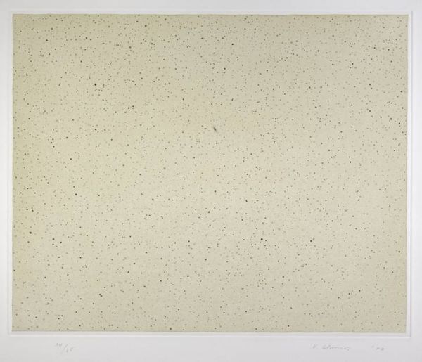 Curator: Here we have Vija Celmins' "Night Sky 1 Reversed," part of the Tate collection. It's a delicate image, only about 39 by 48 centimeters. What strikes you first? Editor: It feels like a vast, silent expanse. The reversed field, light stars on a dark ground, evokes a sense of the infinite. Stars as points of light, piercing darkness. Curator: Celmins is known for her meticulous realism, but there's also an interesting tension here. She's recreating an image, but the act of reversal changes its cultural weight. Editor: Absolutely. The "night sky" is laden with cultural significance—navigation, mythology, dreams. By inverting it, Celmins asks us to reconsider how we perceive these symbols. It’s a powerful statement about the relativity of images. Curator: Her work also underscores the role of institutions in framing our view of nature itself. Is a night sky in a gallery the same as the one we see above? Editor: Perhaps it becomes more about memory, an echo of collective stories. It makes one think about the nature of images as carriers of cultural memory. Curator: A provocative thought, especially considering Celmins' dedication to such precise reproduction. Editor: Exactly, it lingers in the mind, this quiet, reversed cosmos.