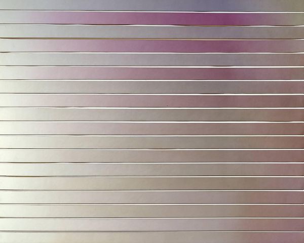 Samia Halaby made "Aluminum Steel," a painting where she explores the possibilities of light and form on a large canvas. She’s not just depicting something; she’s creating an experience through how she handles the paint. The canvas shimmers with a metallic sheen, almost like you could touch it and feel the cool surface of steel. The colors, mostly cool blues and silvers, blend and reflect, giving depth to what could have been a flat surface. Look at how each form bends into the next, creating a sense of motion. These forms have a graphic quality that reminds me of Bridget Riley or Victor Vasarely; it's like she’s pushing the boundaries of perception, making our eyes dance across the surface. Halaby isn't afraid to embrace ambiguity, she is inviting us to find our own way through her visual landscape.