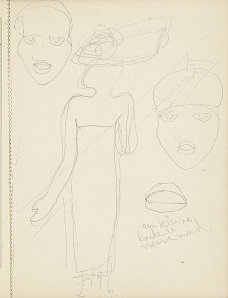 This pencil sketch called 'Hoofd van een Afrikaan en een oog', by Reijer Stolk feels like an intimate glimpse into the artist’s notebook. It's cool to see the artist working through the process of seeing. The light touch of the pencil gives the drawings a tentative, exploratory quality, like Stolk is feeling his way around the forms. The stains and smudges on the paper show the physicality of the artistic process, a reminder that art isn't just about the final image but the messy, hands-on journey of getting there. The additional eye, floating to the side, feels less like a study of anatomy than an attempt to capture the essence of vision itself. You might see echoes of someone like Philip Guston here, in the raw honesty and willingness to embrace imperfection. Stolk’s sketch invites us to appreciate the beauty of the incomplete and the power of simple lines to convey complex ideas.