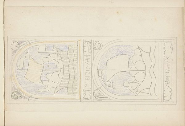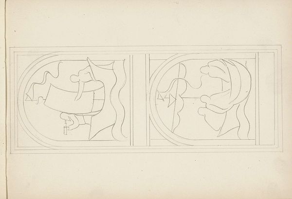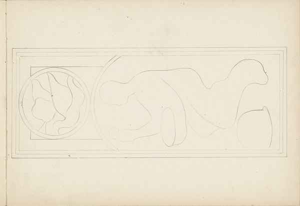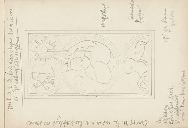 Antoon Derkinderen created this sketch titled "Mars in een medaillon," and it offers a glimpse into the cultural and social currents of the late 19th and early 20th centuries. This artwork is a cultural artifact reflecting the shifting perceptions of masculinity and power during a time of industrial change. The central figure, presumably Mars, the god of war, appears in a moment of introspection, head bowed and sword in hand, which diverges from traditional portrayals of heroism. Derkinderen uses symbolism, with the scorpion and other figures perhaps representing hidden threats. Consider that Derkinderen lived during a period marked by intense social and political change, including the rise of socialism and growing calls for social justice. His choice to depict Mars in a moment of contemplation may reflect a broader questioning of traditional power structures. There’s a vulnerability in his bowed head, inviting us to reflect on the human cost of conflict.