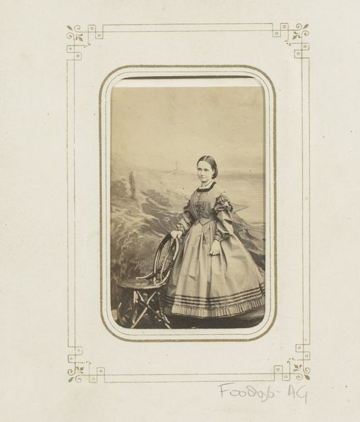 Editor: We’re looking at “Portret van een onbekende jonge vrouw,” or Portrait of an Unknown Young Woman, a gelatin silver print from between 1860 and 1878 by Peter Carstensen. The muted colors create an intimate and rather somber feeling, but I'm curious, what stands out to you in terms of its formal qualities? Curator: What immediately captures my attention is the photograph's masterful composition within its oval frame. Notice how the artist carefully arranges the sitter to interact dynamically with this shape. The young woman’s seated posture and the slight angle of her gaze create a subtle counterpoint to the rigidity one might expect. The chiaroscuro is cleverly deployed, and what strikes you about the use of light in this artwork? Editor: The soft lighting definitely contributes to the overall mood, it’s a very gentle fade. Almost like a memory, would you say the tonal range impacts the reading of the subject? Curator: Precisely. The restricted palette invites close inspection. Furthermore, examine the textured materiality achieved through the gelatin silver print technique. These tonal modulations affect our reading of the image. They enhance not just the visual experience, but also the physical presence of the artwork. Editor: It’s interesting how you focused on the materiality and the formal aspects; I didn't consider the oval shape as an active compositional element at first. Curator: Indeed, and contemplating the visual organization allows a closer consideration to how material processes contribute to the work’s significance. I hope it provides some insight for your exploration. Editor: Absolutely, thinking about these relationships between the form, materiality, and light have provided another set of tools that I can use for critical analysis. Curator: Excellent, now that is an effect the formal analysis might strive for.