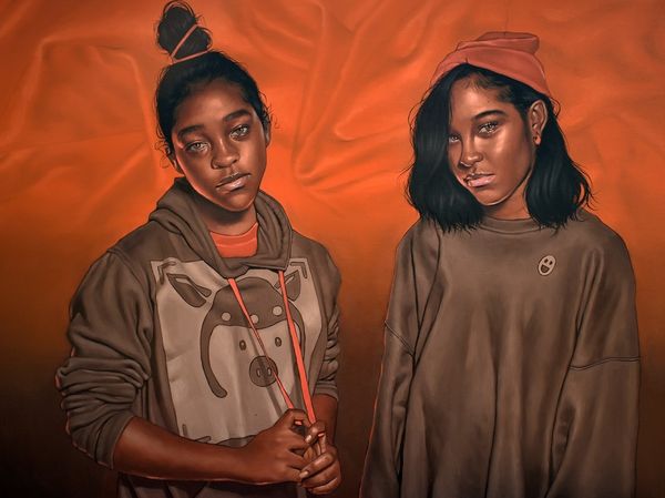 Curator: Monica Ikegwu painted this powerful portrait, called "Take Down," in 2022. Editor: The sheer scale is the first thing that strikes you. It feels intimate yet monumental, almost confronting in its direct gaze. Curator: Absolutely. The work emerges within a significant moment, as Black artists navigate spaces still steeped in histories of underrepresentation and misrepresentation. "Take Down" offers a contemporary representation that defies those legacies. Editor: I’m fascinated by Ikegwu's control of color, especially her approach to the limited monochromatic palette. The nuances in the shades of mauve generate dimension on the canvas. What strikes me, though, is not just the color itself but the interplay of texture between skin, clothing, and the glorious unrestrained hair. Curator: Hair as a political statement, hair as freedom, hair as self-expression! We can consider the natural hair movement, particularly the complex negotiations around Black women’s hair within societal expectations of beauty and professionalism. Editor: Precisely. Look at the meticulous details. You can feel the weight and volume. Curator: These are powerful portraits. They command a presence, reflecting Ikegwu's conscious navigation of representation within contemporary painting. Editor: To consider those choices in detail and admire how Ikegwu orchestrates tone and form in the composition adds layers to that reading of strength and presence. It brings us back to the artist's remarkable technique and skillful observation. Curator: Ikegwu’s practice intersects so many vital dialogues in the cultural landscape. This singular image creates space for complex conversations. Editor: Exactly. Now when you step back from this image you will see both the artist’s hand at play, and your own readings of contemporary dialogue emerge.