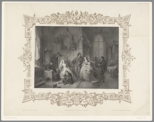 Curator: Jules David’s 1836 pen and ink drawing on paper, “Beslaglegging op spullen van een arm gezin,” or “Seizure of goods from a poor family,” depicts a scene of… well, it's all in the title. Editor: Gosh, it's pretty bleak. You feel the cold of that bare room and the crushing weight of the law bearing down on them. Look at the kids clinging to their mother, even the dog seems mournful. Curator: It's a clear social commentary, isn't it? The detailed rendering really puts the focus on the material conditions of poverty. See how the officer’s formal dress contrasts with the ragged clothing of the family. The objects themselves—the mattress, the simple tools—become evidence of a struggle for survival. Editor: The objects tell the story, absolutely! It reminds me a bit of a stage set. But instead of drama, it's raw, sad life laid bare, captured with such simple, delicate lines. The pen work, that meticulous detail… it almost feels like an act of witness. A poignant observation of a cruel event, transformed through the act of its production. Curator: Absolutely. The drawing emphasizes the system that creates such disparities. This links it, historically, to the rise of industrial capitalism and its impacts on the working class. We see those concerns manifest frequently in Romanticism and early Realism. What's absent is what I find compelling, actually: there's no outright judgement or easy emotional plea, but an observation that triggers consideration from a viewer. Editor: I think you’re spot on. There’s almost an awkward stillness about the scene, everyone caught in this horrible in-between moment. You’re not asked to take a side so much as witness. And even after all this time, you feel something real seeing it. Curator: Indeed. Examining artwork such as this drawing forces us to consider the role of systems and the act of material extraction from the poor by economic and state actors, not just the sentimental elements, in evaluating an artwork from that time. Editor: Looking closely has changed the way I see it – it's like peeling back the layers of paper to find a heart beating faintly underneath. A dark one, sure, but one filled with humanity nonetheless.