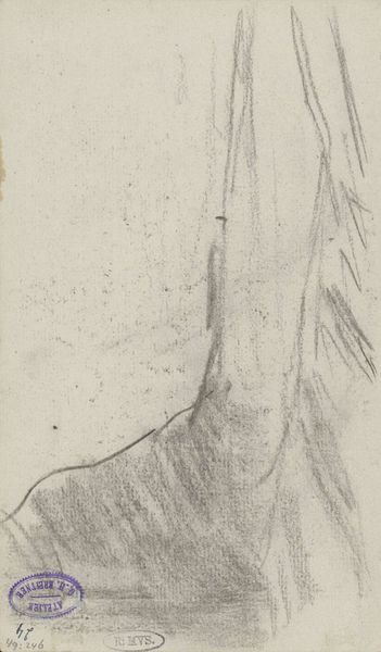 Editor: We're looking at "Studie," a pencil drawing from 1882 by George Hendrik Breitner, currently held in the Rijksmuseum. It has the look of a quickly sketched landscape, almost dreamlike in its simplicity. What do you see in this piece? Curator: This isn't just a landscape; it's a record of a specific moment, reflecting Breitner's radical embrace of realism and urban life. Remember, Breitner was documenting Amsterdam during a period of intense social and economic change. The looseness of the sketch isn't carelessness. It's a conscious choice to depict the fleeting, often harsh, realities of everyday life for marginalized communities. What do you think he might have been trying to capture with such immediacy? Editor: Maybe he wanted to show the temporary nature of their situation? That everything around them was also kind of unfinished and uncertain. Curator: Exactly. And that uncertainty isn't just aesthetic, is it? It mirrors the political instability of the era, the rise of industrialization, and its effects on people’s lives. Consider who typically owned and consumed landscape paintings at the time, and how Breitner subverts those expectations. Does that add a layer to your understanding of the artwork? Editor: It does! Knowing Breitner was making a conscious choice to depict the real world for a wider audience – beyond just wealthy patrons– shows how powerful his art was as social commentary. Curator: Precisely. So this seemingly simple sketch then becomes an act of resistance. He captured the unvarnished truth of a world on the brink. Editor: It’s amazing how much context transforms our understanding. Thanks for unpacking all that! Curator: My pleasure. It highlights art's intrinsic ability to comment on societal structure.