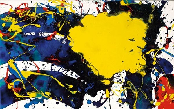 Editor: We’re looking at Sam Francis’s “Untitled (SFP94-109, SFF.1757)” from 1994, created with mixed media including acrylic paint. It strikes me as both chaotic and vibrant, this dance of colors… How do you see it? Curator: The “chaos,” as you put it, is crucial. Let’s consider the means of production: flung paint, varied viscosity acrylics. Francis isn't just applying pigment; he’s engaging in a physical process. This method democratizes artmaking, rejecting traditional hierarchies of skill and celebrating materiality and process. Does the "drip" aesthetic prompt thoughts regarding the work's creation? Editor: Definitely. It makes me wonder about the physicality of making this piece, especially considering that it’s a mixed media artwork. Could we see it as an act against commercialism, a turn to tangible practice? Curator: Exactly. Abstract Expressionism can be viewed as a direct reaction against the increasingly consumerist culture following World War II. By emphasizing the physical act of painting, and showcasing its materiality, Francis resists the commodification of art, highlighting process over product. It asks the viewer to appreciate labor and material, pushing against the clean lines of mass-produced goods. Editor: That’s such an interesting viewpoint – to connect the material reality of the painting to broader economic forces at play during the era it was created. Now I see the material handling almost as a rebellion. Curator: Precisely. It compels us to ponder on art's position and how the creation process inherently holds significance when examined alongside prevailing societal dynamics. I will continue to look through a different scope going forward.