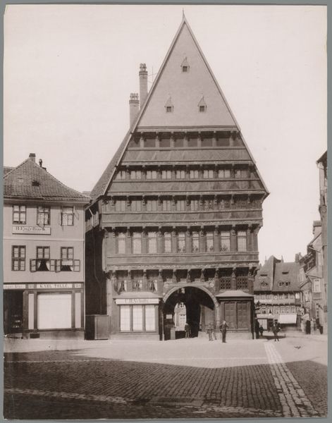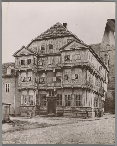 Editor: We're looking at "Woonhuis en atelier van Albrecht Dürer in Neurenberg," a photograph dating from around 1860-1890, housed at the Rijksmuseum. It's striking how the aged paper gives it this almost ghostly quality, a tangible connection to the past. What do you see in this piece that speaks to its historical context? Curator: For me, this image goes beyond simply documenting a building; it invites a consideration of artistic legacy and its entanglement with social and economic structures. Dürer, during his time, navigated the complex landscape of patronage, production, and burgeoning art markets. This photograph, taken centuries later, signifies a cultural interest in preserving and celebrating that legacy, a legacy intrinsically linked to Dürer’s identity as a successful, white, male artist. Editor: That's fascinating. It highlights how even architectural photographs can be viewed through a critical lens. Curator: Exactly. Think about whose stories are being told and whose are being left out. The choice to immortalize Dürer’s house, implicitly upholds the value we place on individual genius, potentially overshadowing the collective labor involved in creating art and architecture. Editor: So, you're saying the act of preserving and presenting this particular house reinforces certain power structures within the art world? Curator: Precisely. And we have to consider the historical moment this photograph was taken – the 19th century was a period of intense nationalism and hero-worship. Does the photograph merely depict a building, or does it actively participate in constructing a specific national artistic identity? Editor: I hadn't considered that aspect. Looking at it now, the photograph feels less like a neutral record and more like a deliberate act of cultural preservation. Curator: Right, which prompts questions about the role of museums and art history in perpetuating specific narratives. What kind of stories do we continue to tell? Editor: This really gives me a lot to think about – how deeply intertwined art is with identity, power and the politics of representation. Thank you. Curator: My pleasure. Examining these connections can open up new ways to interpret art and its function in the world around us.