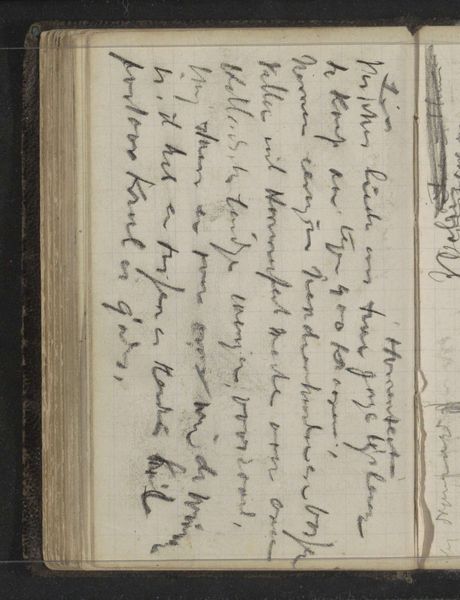 Louis Apol made this sketch of a ship battling a storm on the Barentsz Sea with graphite on paper. The quick, light strokes of the graphite capture the harsh conditions of the sea and the precariousness of the ship's journey. Graphite, essentially processed carbon, offers the artist a direct connection to the paper's surface, allowing for immediate expression. The grid on the paper suggests it was a page torn from a notebook, perhaps used by Apol to record his immediate impressions. The light, ephemeral quality of the drawing conveys a sense of urgency and the fleeting nature of the moment, as if trying to capture a memory before it fades. This scene reminds us of the human endeavor and labor involved in maritime exploration, trade, and survival, underscoring the contrast between human ambition and the brute power of nature. It prompts us to reflect on the stories embedded in the materials and making of art, blurring the boundary between artistic creation and the broader narratives of human experience.