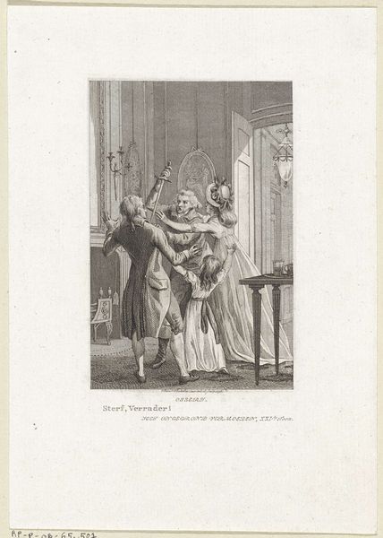 This print, made in 1742 by Simon Fokke, tells the story of Hugo de Groot’s escape from Loevestein Castle. It's a story rendered through the precise and demanding technique of engraving. Look closely at the image – you’ll see how the network of fine lines creates a range of tones and textures, from the opulent fabrics to the characters' facial expressions. This wasn't a quick process. Each line was incised into a metal plate, a testament to Fokke’s skill, and the labor-intensive processes that defined printmaking at this time. The final image, printed on paper, could then be widely distributed. It’s interesting to consider the social context here. Printmaking allowed stories to be shared and consumed across different social classes, enabling political discourse to reach a broader audience. The print becomes more than just an artwork; it's a vehicle for disseminating ideas, and shaping public opinion. By understanding the materials and the making, we can understand the full meaning of the artwork, which challenges traditional distinctions between fine art and craft.